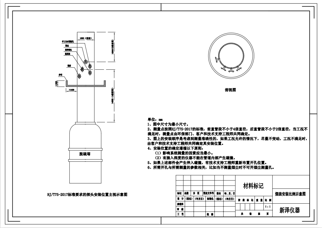 煙氣在線監(jiān)測設(shè)備之煙囪開孔安裝示意圖