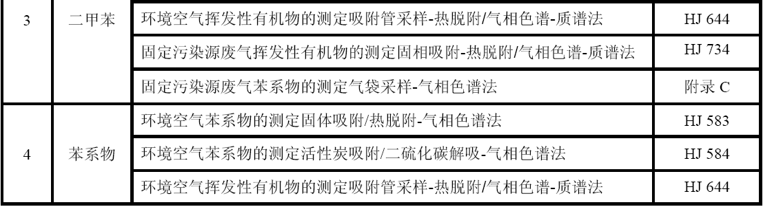 GB 16297 大氣污染物綜合排放標(biāo)準(zhǔn) GB 24409 汽車(chē)涂料中有害物質(zhì)限量 GB/T 15089 機(jī)動(dòng)車(chē)輛及掛車(chē)分類(lèi) GB/T15432 環(huán)境空氣總懸浮顆粒物的測(cè)定重量法 GB/T 16157 固定污染源排氣中顆粒物測(cè)定與氣態(tài)污染物采樣方法 HJ 583 環(huán)境空氣苯系物的測(cè)定固體吸附/熱脫附-氣相色譜法 HJ 584 環(huán)境空氣苯系物的測(cè)定活性炭吸附/二硫化碳解吸-氣相色譜法 HJ 644 環(huán)境空氣揮發(fā)性有機(jī)物的測(cè)定吸附管采樣-熱脫附/氣相色譜-質(zhì)譜法 HJ 732 固定污染源廢氣揮發(fā)性有機(jī)物的采樣氣袋法 HJ 734 固定污染源廢氣揮發(fā)性有機(jī)物的測(cè)定固相吸附-熱脫附/氣相色譜-質(zhì)譜法 HJ/T 38 固定污染源排氣中非甲烷總烴的測(cè)定氣相色譜法 HJ/T 55 大氣污染物無(wú)組織排放監(jiān)測(cè)技術(shù)導(dǎo)則 HJ/T 75 固定污染源煙氣排放連續(xù)監(jiān)測(cè)技術(shù)規(guī)范(試行) HJ/T 194 環(huán)境空氣質(zhì)量手工監(jiān)測(cè)技術(shù)規(guī)范 HJ/T 293 清潔生產(chǎn)標(biāo)準(zhǔn)汽車(chē)制造業(yè)(涂裝) HJ/T 397 固定源廢氣監(jiān)測(cè)技術(shù)規(guī)范 《建設(shè)項(xiàng)目環(huán)境保護(hù)設(shè)施竣工驗(yàn)收監(jiān)測(cè)技術(shù)要求(試行)》(環(huán)發(fā)(2000)38號(hào))