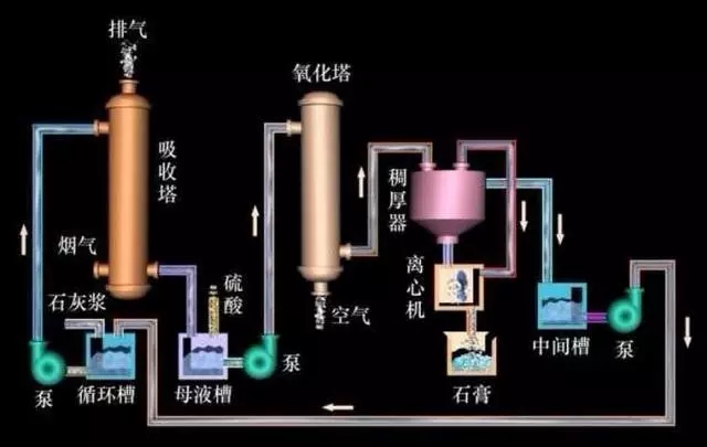 是利用石灰石或石灰漿液吸收煙氣中的SO2,生成亞硫酸鈣,經(jīng)分離的亞硫酸鈣(CaSO3)可以拋棄,也可以氧化為硫酸鈣(CaSO4),以石膏形式回收。是目前世界上技術最成熟、運行狀況最穩(wěn)定的脫硫工藝,脫硫效率達到90%以上。