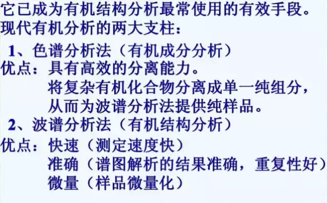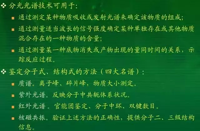 光譜: 定性分析,確定樣品中主要基團,確定物質類別。從紅外到X射線,都是光譜,其應用范圍差別很大,是對分子或原子的光譜性質進行分析解析的。