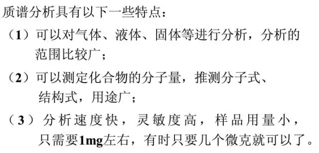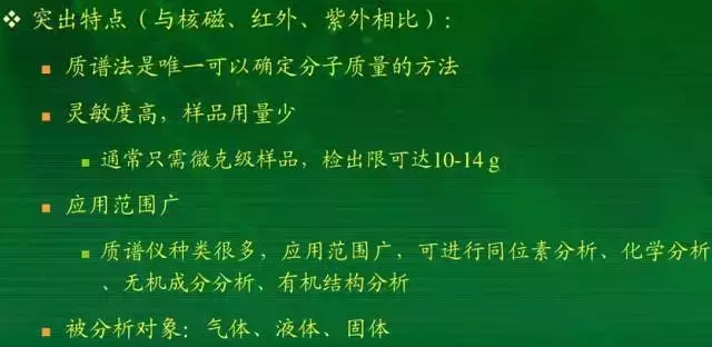 質譜: 分析分子、原子、或原子團的質量的,可以推測物質的組成,一般用于定性分析較多,也可定量。