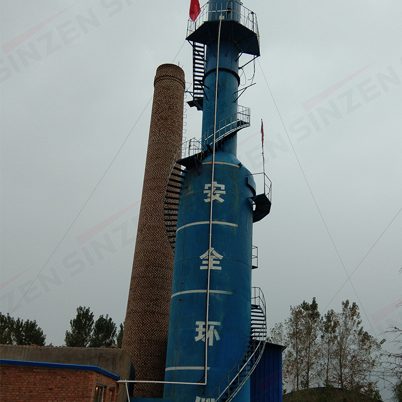 脫硫塔主要由筒體,噴霧裝置、篩板、脫水除霧裝置、溢水孔、清理孔等組成,其工作原理是:含煙塵及硫氧化物的煙氣流通過進口煙道進入筒體,含有[OH-]離子的堿性水分別從脫硫塔上中下部由螺旋噴嘴噴出,形成與煙氣成逆向的多排高速霧化水幕,增加了煙塵硫氧化物與水的碰撞概率,并充分利用霧化液滴的速度來造成很高的氣液相對速度,以保證除塵和脫硫效果。同時氣體經(jīng)過篩板時對篩板上的液層產(chǎn)生鼓泡作用,增加了氣液傳質(zhì)的表面積和湍動狀態(tài),提高了傳質(zhì)速率,二氧化硫與堿液發(fā)生氣液交換,進一步提高了脫硫效果。脫硫生成物隨水流到脫硫塔底部,從溢水孔排走,在筒體底部封底并設(shè)有水封槽以防止煙氣從底部泄漏,備有清理孔便于進行筒體底部清理。脫硫后廢水由底部溢流孔排出進入沉淀池,沉淀中和再生,循環(huán)使用。凈化后的氣體,通過筒體上部經(jīng)除霧后引出,從而達到除塵脫硫目的。