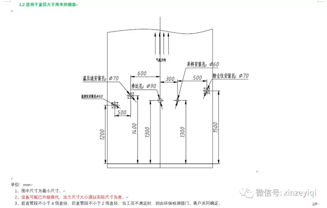 一、 煙氣在線監(jiān)測(cè)設(shè)備開孔示意圖之圓形垂直煙囪